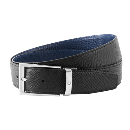 Двусторонний ремень из кожи черного и синего цвета 35 мм от магазина премиальных ручек Premium Pens в Чите.
