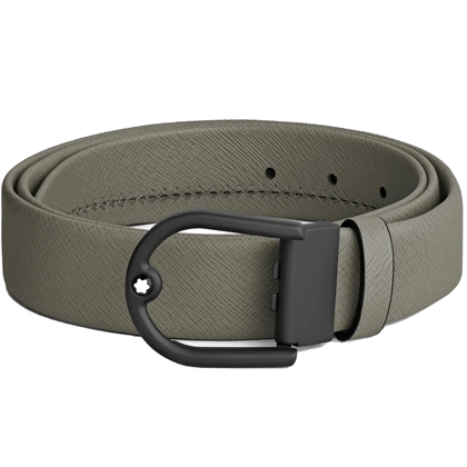 Кожаный ремень 35 мм из кожи серого цвета, пряжка в форме подковы от магазина премиальных ручек Premium Pens в Чите.